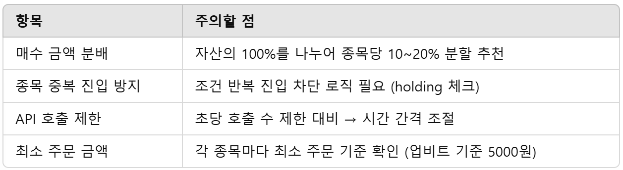 - 리스크 분산: 여러 종목에 나누어 진입해 손실 위험 완화