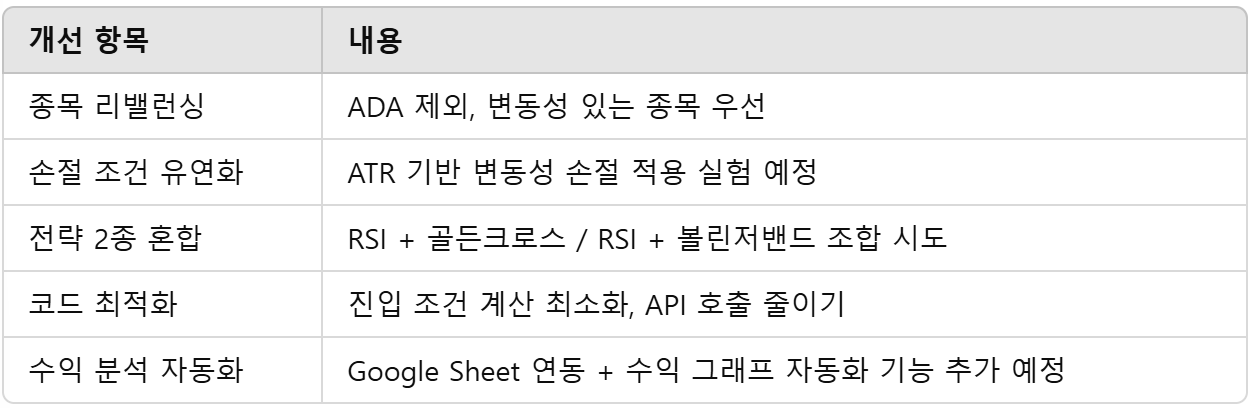 - 손절 조건을 ‘무조건 -8%’로 고정하기보다 변동성 기반으로 조정하는 것이 더 효과적일 수 있음